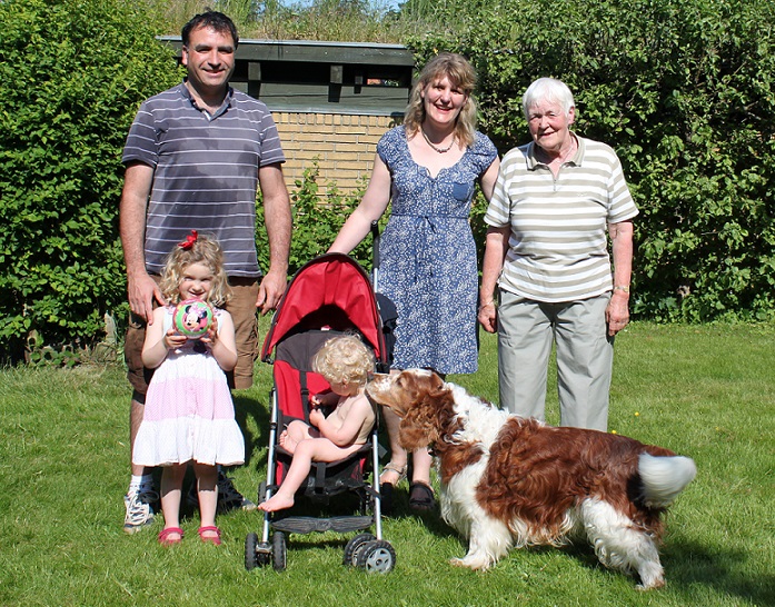 Sommer 2014: Dejligt gensyn med Kimberley og familie, som besøger "faster" Piper i Aarhus efter bl.a at have været en tur i Legoland :-) Vores Welsh Springer Ellas onkel "Bud" (Swingin´ Welsh Bud) nyder besøget i fulde drag !